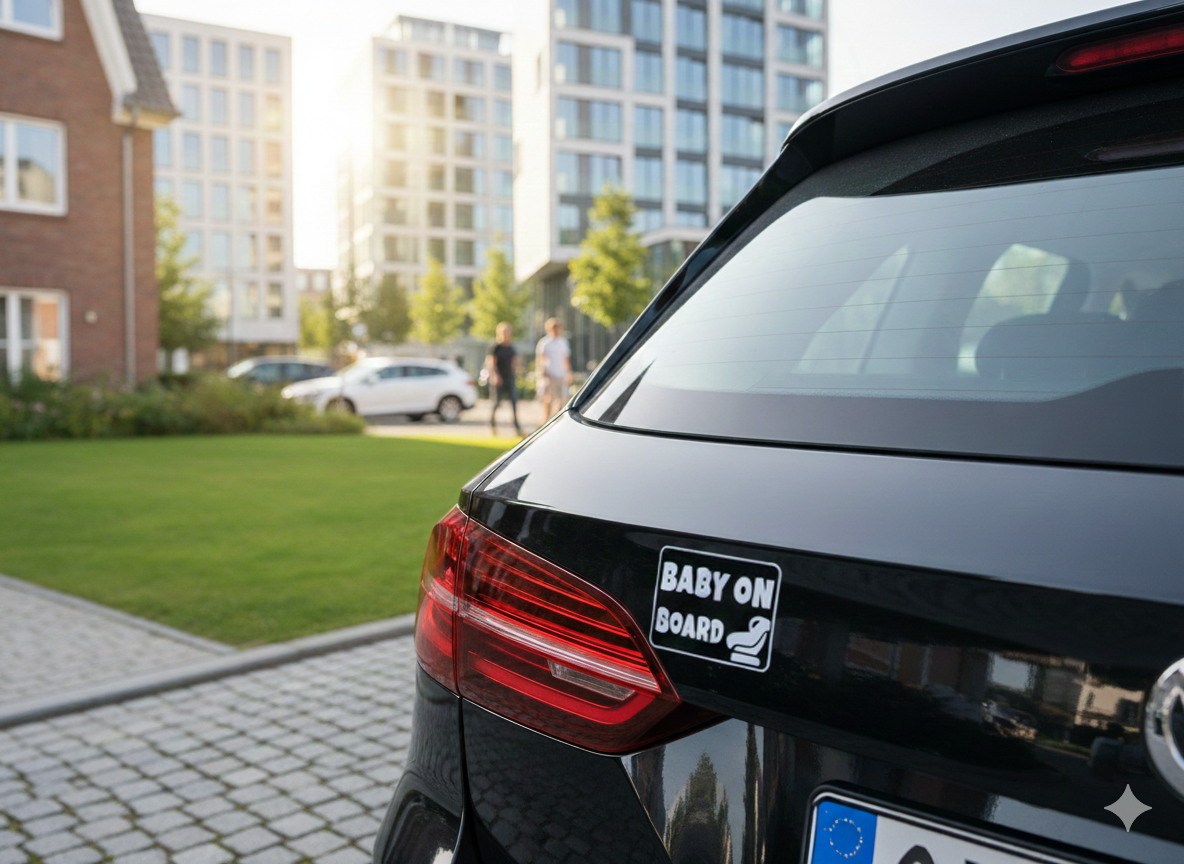 Mit unserem „Baby on Board“ Autoaufkleber zeigst du anderen Verkehrsteilnehmern klar und dezent, dass ein Baby mitfährt. Das minimalistische Schwarz-Weiß-Design passt perfekt zu jedem Fahrzeug und ist sowohl funktional als auch modern.